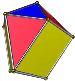 In geometry, a rectified prism (also rectified bipyramid) is one of an infinite set of polyhedra, constructed as a rectification of an n-gonal prism, truncating the vertices down to the midpoint of the original edges. In Conway polyhedron notation, it is represented as aPn, an ambo-prism. The lateral squares or rectangular faces of the prism become squares or rhombic faces, and new isosceles triangle faces are truncations of the original vertices.