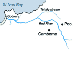 The Red River's catchment area includes the major mining areas of Tuckingmill, Pool, and Camborne. Thus: