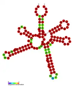 ![]() Predicted secondary structure of the 3′TE-DR1 translation enhancer element of RCNMV | |