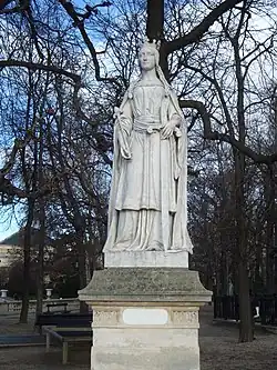 The Queens of France and Famous Women (Reines de France et Femmes illustres) is a group of sculptures in the Jardin du Luxembourg in Paris. It consists of 20 marble sculptures arranged around a large pond in front of the Palais du Luxembourg. Louis-Philippe I chose the women to be portrayed and most of the sculptures were commissioned around 1843, for around 12,000 francs each, and generally exhibited in the Paris Salons of 1847 or 1848.[1]