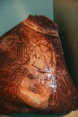 Some researchers think that the symbols used for representing femininity are the rhombus for fertility and the triangle for fecundity.[7] The cross, symbolizing nature's power of fertility and renewal, was sometimes used to represent masculinity as well as the phases of the moon.[8]