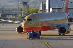 Reno–Tahoe International Airport (IATA: RNO, ICAO: KRNO, FAA LID: RNO) is a public and military airport three miles (4.8 km) southeast of downtown Reno, in Washoe County, Nevada, United States.[1][3] It is the state's second busiest commercial airport after Harry Reid International Airport in Las Vegas. The Nevada Air National Guard has the 152nd Airlift Wing southwest of the airport's main terminal. The airport is named after both the City of Reno, Nevada and Lake Tahoe.[4] The airspace of Reno-Tahoe Airport is controlled by the Northern California TRACON and Oakland Air Route Traffic Control Center.[5]