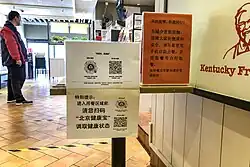 - ^ "北京发布新版餐饮经营服务指引 顾客进店就餐需出示"北京健康宝"". Beijing Daily. 20 April 2020. Archived from the original on 24 April 2020. Retrieved 27 April 2020.