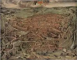 The Revolt of Ghent was an uprising by the citizens of Ghent against the regime of the Holy Roman Emperor and Spanish king Charles V in 1539. The revolt was a reaction to high taxes, which the Flemish felt were used solely to fight wars abroad (in particular the Italian War of 1536–1538).[1] Charles marched his army into the city the following year and the rebels surrendered without a fight. Charles humiliated the rebels by parading their leaders in undershirts with hangman nooses around their necks. Since then Ghent citizens informally call themselves "noose bearers".[2]
