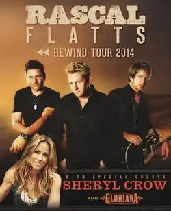 The Rewind Tour was the twelfth headlining concert tour by American country music trio Rascal Flatts, in support of their ninth studio album Rewind (2014).[1] The tour began on May 16, 2014 in Maryland Heights, Missouri and ended on March 14, 2015 in Las Vegas, Nevada.