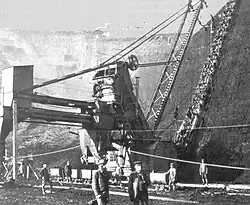 The coal deposits in the southern district ran out, so northern opencast mines were expanded or newly developed to meet the increased demand for coal. Coal mining and processing could only be maintained during the world war with the help of several tens of thousands of forced laborers and prisoners of war;[3][4] many Germans employed in lignite mining were called up for military service.
