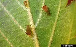 | Nymphs on the underside of a leaf | |