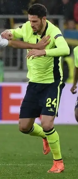 For 2015–16, Ferreira joined S.C. Braga on a four-year deal.[12] He contributed nine appearances in their quarter-final run in the Europa League, scoring in the group stage against FC Slovan Liberec in a 2–1 home win, but twice scored an own goal in the 4–0 away defeat to FC Shakhtar Donetsk which finished 6–1 on aggregate.[13][14] In a friendly against English club Wigan Athletic in July 2016, Ferreira suffered a knee injury that meant he missed the start of the 2016-17 season.