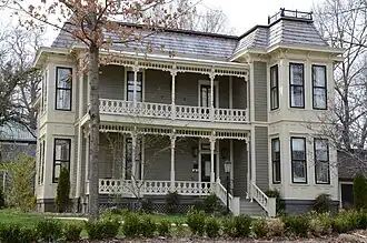 The Rice House is a historic house at 501 NW "A" Street in Bentonville, Arkansas. It is a 2+1⁄2-story wood-frame structure with elaborate Eastlake (Queen Anne) styling. Characteristics of the style include jigsaw-cut bracketing, spindled balustrades, and molded panels under the windows. At the time of its construction in 1890, it was considered one of Bentonville's grandest houses.[2] The house was listed on the National Register of Historic Places in 1988.[1]