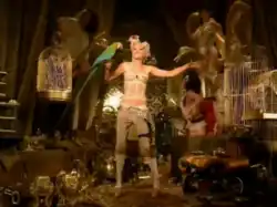 The pirate-themed music video for "Rich Girl" was directed by David LaChapelle and uses the Get Rich mix of the song, which repeats the middle-8 chant section during the intro. The video, inspired by a late-1990s Vivienne Westwood advertising campaign, opens with four Japanese schoolgirls playing with a toy pirate ship and two Bratz dolls of Stefani and Eve, while the girls discuss what they would do if they were a "rich girl". The video features several sequences. Stefani is first shown below the deck of a pirate ship, dancing on a table and singing to the song. She is surrounded by pirates and wenches and is soon joined by Eve, wearing an eyepatch. In the surreal style of LaChapelle, the pirate crew has distorted features, and a leaked casting call commented, "I need the freaks on this one."[42] Above deck Stefani, the Harajuku Girls, Eve, and more pirates dance on the deck and rigging. Stefani is also seen dancing with the Harajuku Girls in a treasure trove, often carrying a sword, and swinging from an anchor. When the girls dunk the toy ship in a fish tank, the galleon engages in cannon fire, causing Stefani and the pirates to fall all over the ship, and Stefani and the Harajuku Girls are soon shipwrecked.