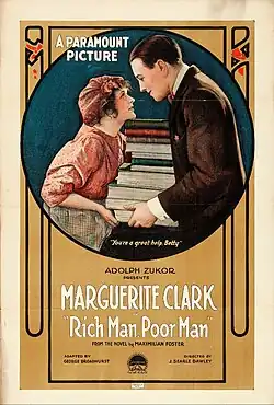 Rich Man, Poor Man is a lost[1] 1918 American silent romantic drama film starring Marguerite Clark and directed by J. Searle Dawley. It is based on a 1916 Broadway play by George Broadhurst. It was produced by Famous Players–Lasky and distributed by Paramount Pictures.[2][3][4]