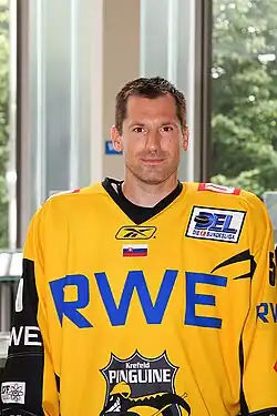 In the 2013–2014 season, he began playing for the Orli Znojmo (Eagles), based in Czech city of Znojmo. The team is part of the Austrian Hockey League, also known as the Erste Bank Eishockey Liga (EBEL) or Erste Bank Hockey League, in English, for its major sponsor.[2] He also competed in the men's tournament at the 2002 Winter Olympics.[3]