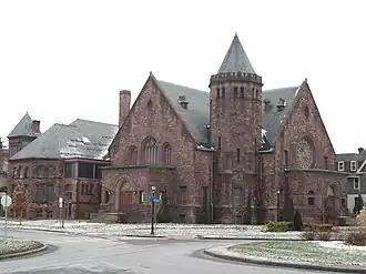 Richmond Avenue Methodist-Episcopal Church, also known as Richmond Avenue United Methodist Church, is a historic Methodist Episcopal Church located at Buffalo in Erie County, New York. It consists of two structures: a rectilinear Chapel structure, which dates to 1885–1891, and a larger Temple structure dating to 1887–1898. Both structures are two and a half stories set on a raised basement story, with two three-story towers. They are built of ashlar Medina sandstone. It is now home to the Upper West Side Arts Center.[2]