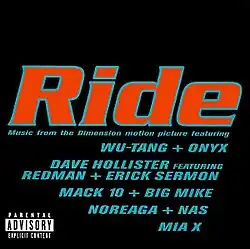 Ride (Music from the Dimension Motion Picture) is the soundtrack to Millicent Shelton's 1998 film Ride. It was released on January 27, 1998 (exactly 2 months before the film's release on March 27, 1998), by Tommy Boy Records and consists of hip hop and R&B music. The album has performances by Adriana Evans, Big Mike, Dave Hollister, Eric Benét, Erick Sermon, Mack 10, Mia X, Naughty by Nature, N.O.R.E., Onyx, Raphael Saadiq, Redman, Somethin' for the People, Tha Eastsidaz, The Roots and Wu-Tang Clan, among others.