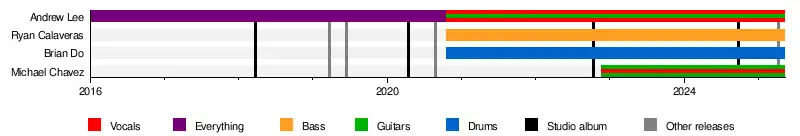 • Andrew Lee – Everything (studio) (2016–2020), Guitars, Vocals (live) (2019–2020), Guitars, Vocals (studio and live) (2020–present)