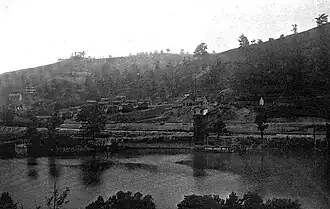The area was populated by some of the earliest settlers to the area, with the safety of Prickett's Fort sitting directly across the Monongahela River. David Morgan (frontiersman) moved there in 1772. That's also the location where he saved his family from an attack by Indians in 1778, based on a fevered dream he had, while recuperating from an illness at the fort. The house still stands there in Rivesville.[10] Now known as the Morgan-Gold House, it was listed on the National Register of Historic Places in 1985.[11]
