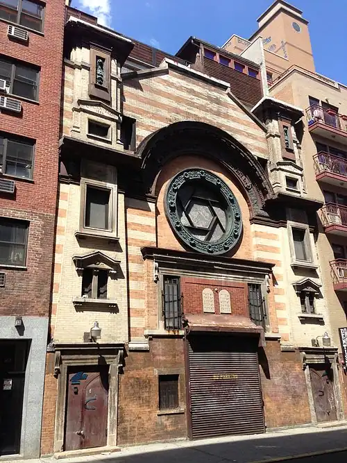 The synagogue of the First Roumanian-American Congregation existed from about 1860 until 2006. The Rivington Street municipal bath was located on Rivington Street from 1900 to 1975.