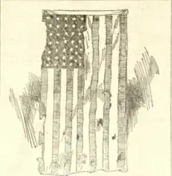Anderson's actions in defense of Fort Sumter made him an immediate national hero.[5] He was promoted to brigadier general in the Regular Army, effective May 15. Anderson took the fort's 33-star flag with him to New York City, where he participated in a Union Square patriotic rally that was the largest public gathering in North America until then.