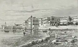 His last appointment afloat was, on 13 May 1840, to the Rodney, 92 guns.[10] On his arrival in that ship off Alexandria, on 22 November 1840, he was instructed by Commodore Napier to open a direct communication between him and Mehemet Ali.[10] Landing, accordingly, close to the palace, he managed to pass the guards unmolested, and, entering the presence-chamber, without introduction, had the good fortune to obtain a very flattering audience, and fully to carry out the object of his mission.[10] The next day he landed, with the Commodore, and, perhaps, remained with him until the conclusion of the convention between him and Mehemet Ali, the Egyptian potentate.[10]