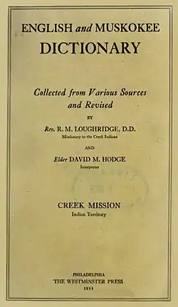 3. ^ "Report of the Reverend R. M. Loughridge to the Board of Foreign Mission Regarding the Creek Mission" (PDF). Oklahoma Historical Society. Retrieved 2008-01-18.
