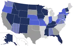 De La Fuente gained ballot access to 147 electoral votes in 20 states (Alaska, Colorado, Florida, Idaho, Iowa, Kentucky, Minnesota, Mississippi, Montana, Nevada, New Hampshire, New Jersey, New Mexico, North Dakota, Rhode Island, Tennessee, Utah, Vermont, Wisconsin, and Wyoming).[75] He qualified as a write-in candidate in Arizona, California, Delaware, Indiana, Maryland, Nebraska, New York, Washington, and West Virginia.[76][77][78][79]