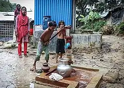 Following the large-scale displacement of Rohingya refugees into Bangladesh in 2017, efforts to improve water, sanitation, and hygiene (WASH) conditions have been undertaken by humanitarian organizations, NGOs, and the Bangladeshi government.[113] Initiatives have focused on expanding clean water access, improving sanitation infrastructure, and promoting hygiene practices to mitigate health risks in the camps.[114] In 2022, the Joint Response Plan (JRP) was introduced to coordinate the actions of 136 humanitarian organizations, including IOM and UNHCR, aiming to enhance WASH services in the refugee settlements.[114][115]