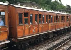 Four carriages built in 1898 and 1900 for use out of Baker Street station in London. Initially steam hauled, later used in electric trains, reverting to steam haulage on the Chesham branch in 1940. Purchased by the Bluebell Railway in 1961, and used until withdrawn in the late 1960s in need of major attention. Now returned to service and are unique as a close-coupled set of vintage carriages. The restoration team were the recipient of the Heritage Railways Association's award as overall winner of their 2006/7 carriage competition. The carriages have seen regular use on London Underground in recent years as part of steam operations on the Metropolitan line, and possess TOPS identities for movements over the Network Rail network to and from London.