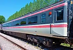 The Mark 2 family of railway carriages were British Rail's second design of carriages, built between 1964 and 1975. They were of steel construction. The MNR project to create a complete set of coaches in the blue-grey livery introduced in 1964 was a first in preservation.[3] Several of the coaches feature Edward Pond murals[53] fitted during refurbishment when in Network SouthEast service. A third set, owned by a group based on the line, was the first set in preservation to wear InterCity Executive livery.