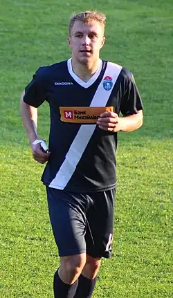 After three seasons in the Ukrainian third tier, he made his debut in the Ukrainian First League with Stal Dniprodzerzhynsk in the winter of 2015.[14][15][16] In his debut season with Stal, he helped the club in securing promotion to the Ukrainian top division.[17] He would remain in the second division the following season by signing with Hirnyk Kryvyi Rih.[18][19] His tenure with Hirnyk would last only a single season as he was released during the summer transfer market.[20][21][22]