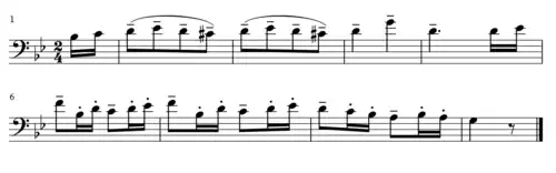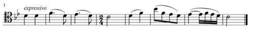 The first section is followed by a brief passage wherein the cello carries a more lyrical and upbeat passage.
