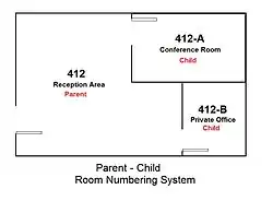 Room numbers may consist of three digits, but can be any number of digits. The room number is generally assigned with the first digit indicating the floor on which the room is located.[2][3]