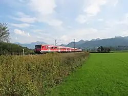 The Rosenheim–Salzburg railway is a continuous double track and electrified main line railway almost entirely within the German state of Bavaria. It is an international transport corridor, linking Rosenheim to Salzburg in Austria.
