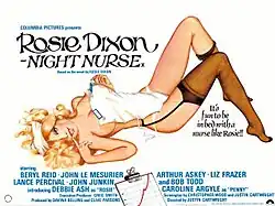 Rosie Dixon – Night Nurse is a 1978 British comedy film directed by Justin Cartwright and starring Debbie Ash, Carolyne Argyle, Beryl Reid and John Le Mesurier.[2] It was written by Christopher Wood and Cartwright based on the 1974 novel Confessions of a Night Nurse by Wood (under the pseudonym Rosie Dixon).