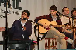 Batmanglij majored in music at Columbia University, where he joined the band Vampire Weekend in 2006.[12] "At Columbia, I would study classical harmony in classes and I would study music on my own, and I would try to re-create songs that I love in recordings...that was really how I learned."[13] The name of the group comes from the movie of the same name that bandmate Ezra Koenig and his friends made over summer vacations. Batmanglij produced their self-titled debut album shortly after graduation while concurrently working multiple full-time jobs. He also produced the band's follow-up album, Contra, which sold 124,000 copies in its first week and landed atop the Billboard 200 charts.[14] Batmanglij plays guitar, keyboard and sings in the band but also acts as a lyricist and songwriter, co-writing the song "Diplomat's Son" on Contra. Koenig has described himself and Batmanglij as "the two main songwriters in the band".[15]