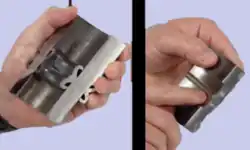 • Step 5: in standard RFW welding (standard parameters), a flash will be created. Outside flash can be cut off on the welder.[21]