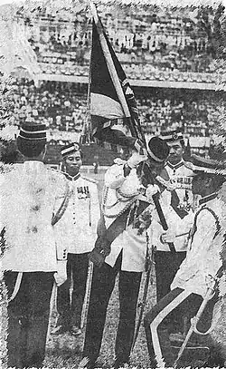 On 3 June 1981, the Royal Military College was granted King's and Regimental's Colours from His Majesty Seri Paduka Baginda Yang DiPertuan Agong, Tuanku Haji Ahmad Shah Ibni Al-Marhum Sultan Abu Bakar, in a historic Presentation of Colours ceremony at the Merdeka Stadium, Kuala Lumpur. This historic ceremony was also witnessed by Her Majesty the Raja Permaisuri Agong, the Deputy Prime Minister Mahathir Mohamad and Siti Hasmah Mohamad Ali.