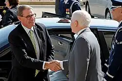 Rudd's term in office coincided with the final months of the Bush administration in the United States. After reports in domestic media that Rudd had joked with journalists that George W. Bush did not know what the G20 Forum was, the press reported that Rudd received a frosty welcome from Bush at the White House dinner that opened G20 summit in Washington in November 2008.[63] Bush's successor, Barack Obama, had a warmer relationship with Rudd, telling the Australian media in April 2010 that Rudd was "smart but humble" and the political leader he was closest to on the world stage.[64]