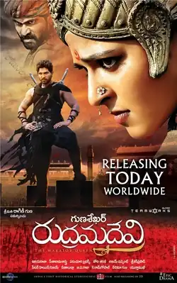 Rudhramadevi is a 2015 Indian Telugu-language 3D biographical action film based on the life of Rudrama Devi, one of the prominent rulers of the Kakatiya dynasty in the Deccan, and one of the few ruling queens in Indian history.[3][4] The film, written and directed by Gunasekhar, features Anushka in the title role[5] alongside Allu Arjun, Rana Daggubati, Vikramjeet Virk, Krishnam Raju, Prakash Raj, Suman, Nithya Menen, Adithya, and Catherine Tresa. The film is narrated by Chiranjeevi.[6] The film's soundtrack and background score were composed by Ilaiyaraaja.[7]