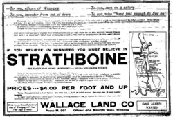 The area was originally named Strathboine, and was slated for development in 1912. However the initial development failed to attract residents due to its remoteness and the collapse of development.[13]