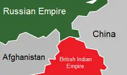 Anglo-Russian rivalries grew steadily over Central Asia during the so-called "Great Game" of the late 19th century.[28] Russia desired warm-water ports on the Indian Ocean while Britain wanted to prevent Russian troops from gaining a potential invasion route to India.[29] In 1885 Russia annexed part of Afghanistan in the Panjdeh incident, which caused a war scare. After nearly completing the Russian conquest of Central Asia (Russian Turkestan) the Russians captured an Afghan border fort. Seeing a threat to India, Britain came close to threatening war but both sides backed down and the matter was settled by diplomacy.[30]