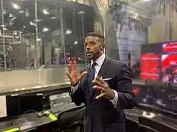 In January 2014, Smith began working as a correspondent and legal analyst for ABC News and ESPN. At ABC, he reported on several stories including the scandal surrounding former L.A. Clippers owner Donald Sterling, Colin Kaepernick, and the movement of players kneeling during the national anthem. Smith has also reported on scores of criminal cases for ABC’s 20/20, including the death of Cecil the Lion's in Zimbabwe,[13] earning him a Genesis Award in 2016,[14] and the exoneration of Mario Casciaro.[15] In 2017, Smith began work as a fill-in anchor on Outside the Lines and E:60 at ESPN.[16] He won a Sports Emmy as part of E:60 in 2018. Smith has done profiles on several athletes including Myles Garrett[17] and Steve McNair.[18]