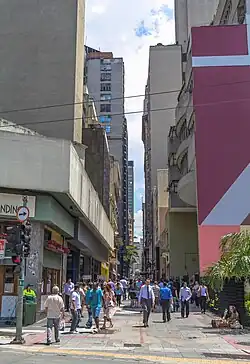 São Bento Street (Portuguese: Rua São Bento) is a historic road located in the Sé district, in the center of the Brazilian city of São Paulo. It starts at Largo São Francisco, next to José Bonifácio Street, and passes through Patriarca Square, Direita Street, Quitanda Street, Largo do Café, Miguel Couto Street and Antonio Prado Square. It ends at Boa Vista Street, in Largo São Bento. Currently, it is predominantly commercial. It includes the Martinelli Building, whose main entrance is accessed from São Bento Street.[1][2]