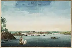 Originally, the town was a large village of the Tupinambá tribe. The first Europeans to settle it were the French, in 1612, who intended to make it the center of a colony named Equinoctial France, under the command of Daniel de la Touche, Seigneur de la Ravardière, and Admiral François de Razilly.[4][5] They built a fort named Saint-Louis de Maragnan after King Louis XIII and his Saintly ancestor Louis IX, the construction of which marked the date of foundation of the city, September 8. Portugal conquered the settlement in 1615 in the battle of Guaxenduba and renamed the city São Luís.[6]