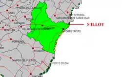S'Illot is near the larger town of Porto Cristo and other tourist resorts such as Cala Millor.[5] It is linked to Palma and to Palma de Mallorca Airport by the Autovia MA-15 highway that crosses the island from east to west.[6][7]