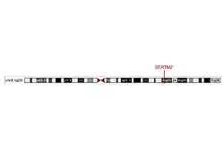 The SERTM2 gene in humans is located on the positive strand of the X chromosome (Xq23), spanning 10,755 base pairs.[5] The SERTM2 gene has three total exons. There is one known transcript or isoform that spans 4,612 base pairs.[6]