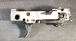 Additionally, the firearm can be field stripped without depressing the trigger, an additional safety feature to prevent negligent discharge of the weapon.[17] The fire control unit is removable, allowing the switch to a different frame size.[18]