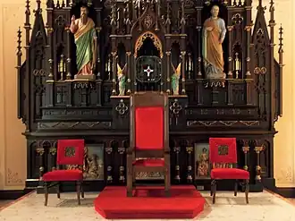 Starting in the 1960s the parish implemented a number of changes, which were in line with the reforms of the Second Vatican Council. In March 1964 a new altar was set up that allowed the priest to face the congregation. The cathedral was the first church in the Quad Cities to make this change.[15] The communion rail, pulpit and bishop's throne were removed in 1980. A new cathedra, or bishop's chair, was placed against the reredos so that he would face the congregation. The liturgies were celebrated in English instead of Latin.