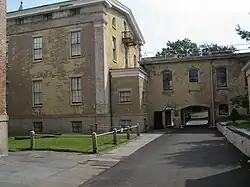 The buildings are set in extensive, landscaped grounds. There are five gates, two of which are vehicular gates, and the other three of which are used by pedestrians only. The vehicular gates are the west gate on Snug Harbor Road and the east gate on Tysen Street. The others are the north gate on Richmond Terrace, the south gate on Henderson Avenue, and the Kissel gate on Kissel Avenue at the far western end of the property.[27] The Italianate gate house at the north gate, as well as the mid-19th-century iron fence on Richmond Terrace, are New York City designated landmarks.[1][24]
