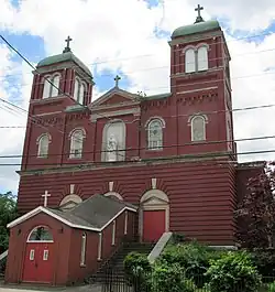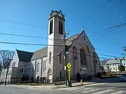 Saint Anne Church, formally the Shrine of Saint Anne for Mothers, is a Roman Catholic church located in the South End neighborhood of Waterbury, Connecticut, part of All Saints Parish (Spanish: Todos Los Santos). Saint Anne Parish was founded in 1886 to serve city's the French-Catholic population. For nearly 100 years, two 100 foot steeples served as a prominent Waterbury landmark; however, due to ongoing structural problems, the spires were carefully removed in 2019 and stored for possible reconstruction.