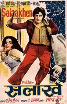 Salaakhen is a 1975 Hindi movie produced by Parvesh Mehra and directed by A. Salaam. It stars Shashi Kapoor, Sulakshana Pandit, A. K. Hangal, Mehmood, Amrish Puri and Ramesh Deo. The music was composed by Ravindra Jain. The rights to this film are owned by Shah Rukh Khan's Red Chillies Entertainment.